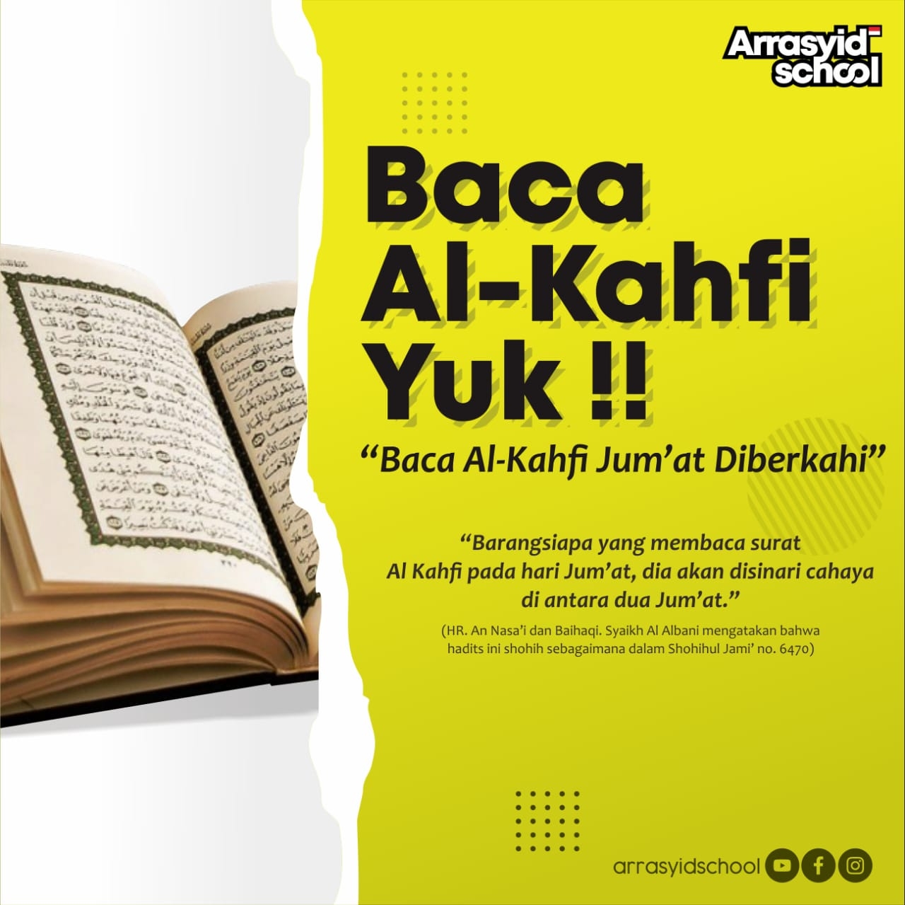 “Sesungguhnya barangsiapa membaca surat Al-Kahfi di hari Jum’at, maka akan dipancarkan cahaya baginya antara dua Jumat” (HR. Hakim dan ia menshahihkannya)