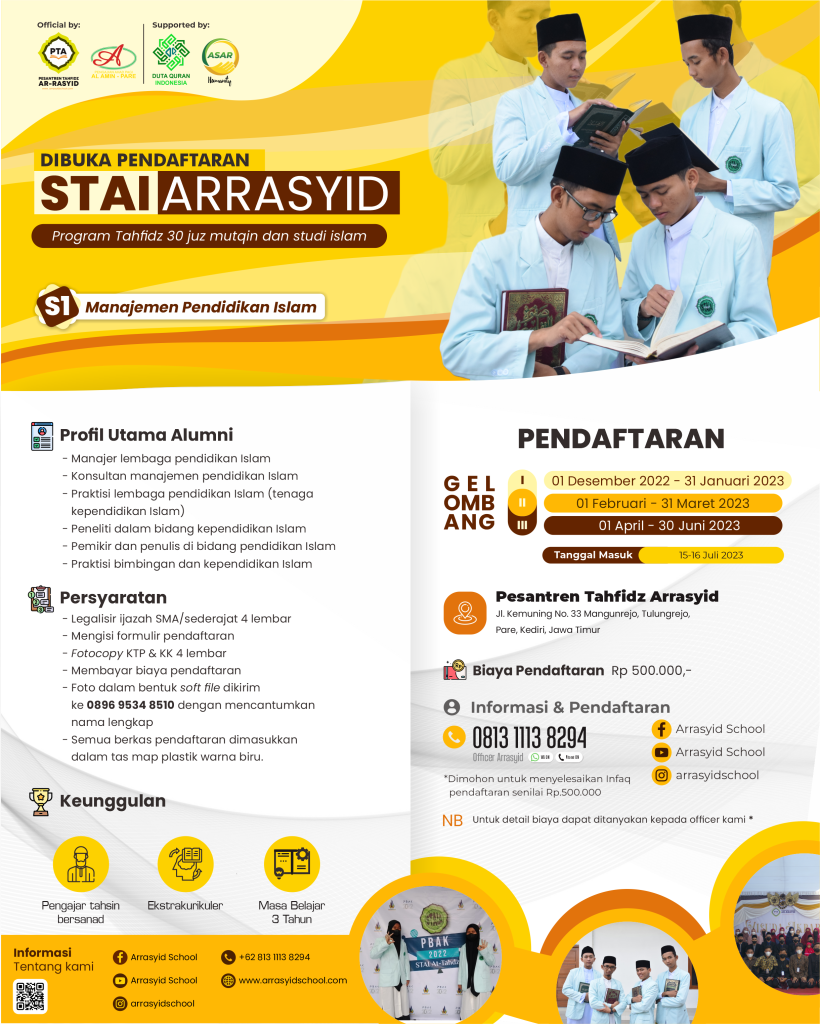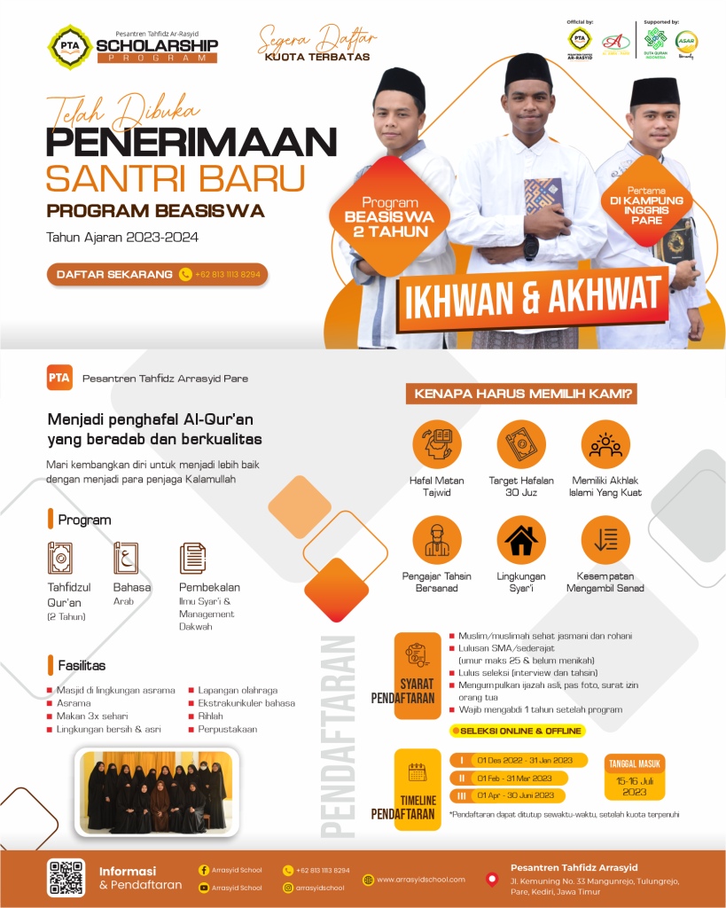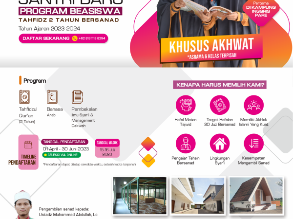 FULL BEASISWA 2 TAHUN PROGRAM TAHFIDZ 30 JUZ & ILMU SYAR’I! KEUNGGULAN PROGRAM: ▶️ Target lulusan hafalan 30 juz ,mutqin & bersanad. ▶️ Paham Ilmu Syar’i. ▶️ Siap berdakwah di..