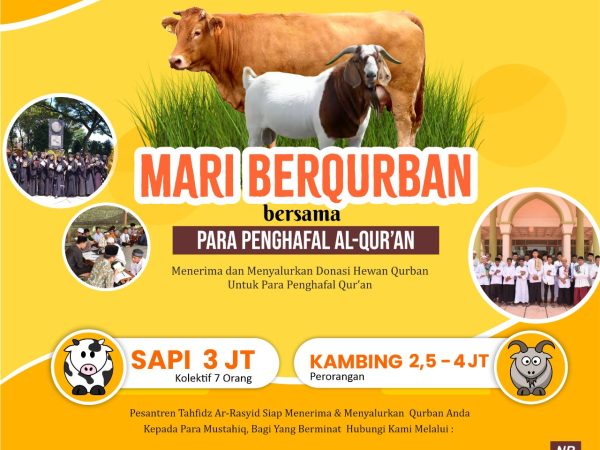 Anda Bberqurban + Mendapat Keberkahan Keluarga Allah mari…..tunaikan qurban 2023 Lebih Berkah, bersama para penghafal Al-qur’an!!😊 Tidaklah seorang manusia melakukan suatu amal pada hari Nahar 10 Dzulhijjah yang lebih dicintai..