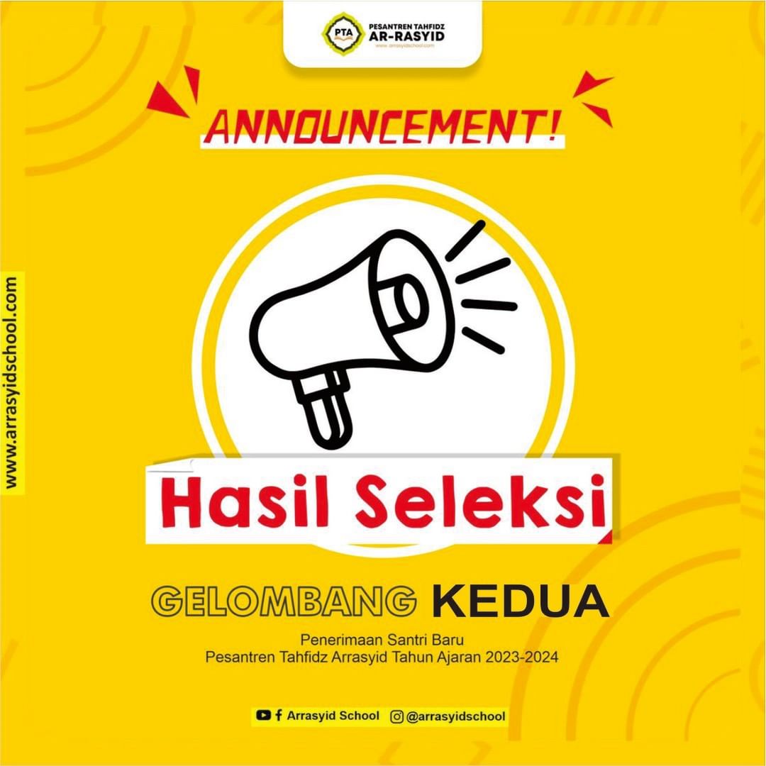Penetapan Nama-Nama Calon Santri Dan Mahasantri Yang Lulus Seleksi Pada Tes Penerimaan Santri Dan Mahasantri Baru Gelombang Kedua Pesantren Tahfidz Arrasyid Pare Tahun Pelajaran 2023-2024