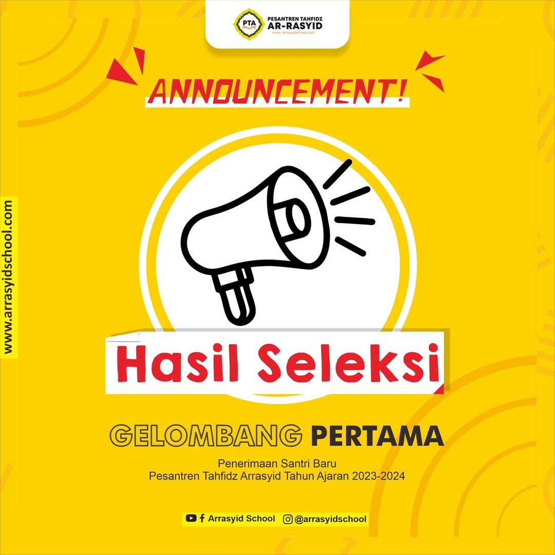 Penetapan Nama-Nama Calon Santri Dan Mahasantri Yang Lulus Seleksi Pada Tes Penerimaan Santri Dan Mahasantri Baru Gelombang Pertama Pesantren Tahfidz Arrasyid Pare Tahun Pelajaran 2023-2024