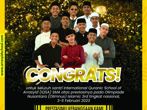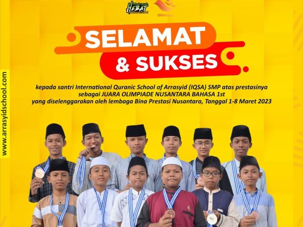 Selamat dan Sukses Santri International Quranic School of Arrasyid (IQSA) SMA atas prestasinya sebagai JUARA OLIMPIADE NUSANTARA BAHASA 2023 1st yang diselenggarakan oleh Lembaga Bina Prestasi Nusantara, Tanggal 1-8 Maret 2023 berikut nama-nama..