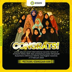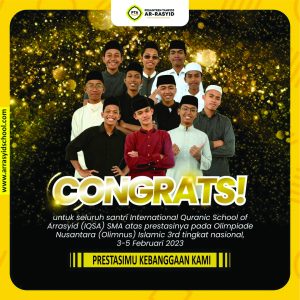 untuk seluruh santri International Quranic School of Arrasyid (IQSA) SMA atas prestasinya pada Olimpiade Nusantara (Olimnus) Islamic 3rd tingkat nasional, 3-5 Februari 2023: