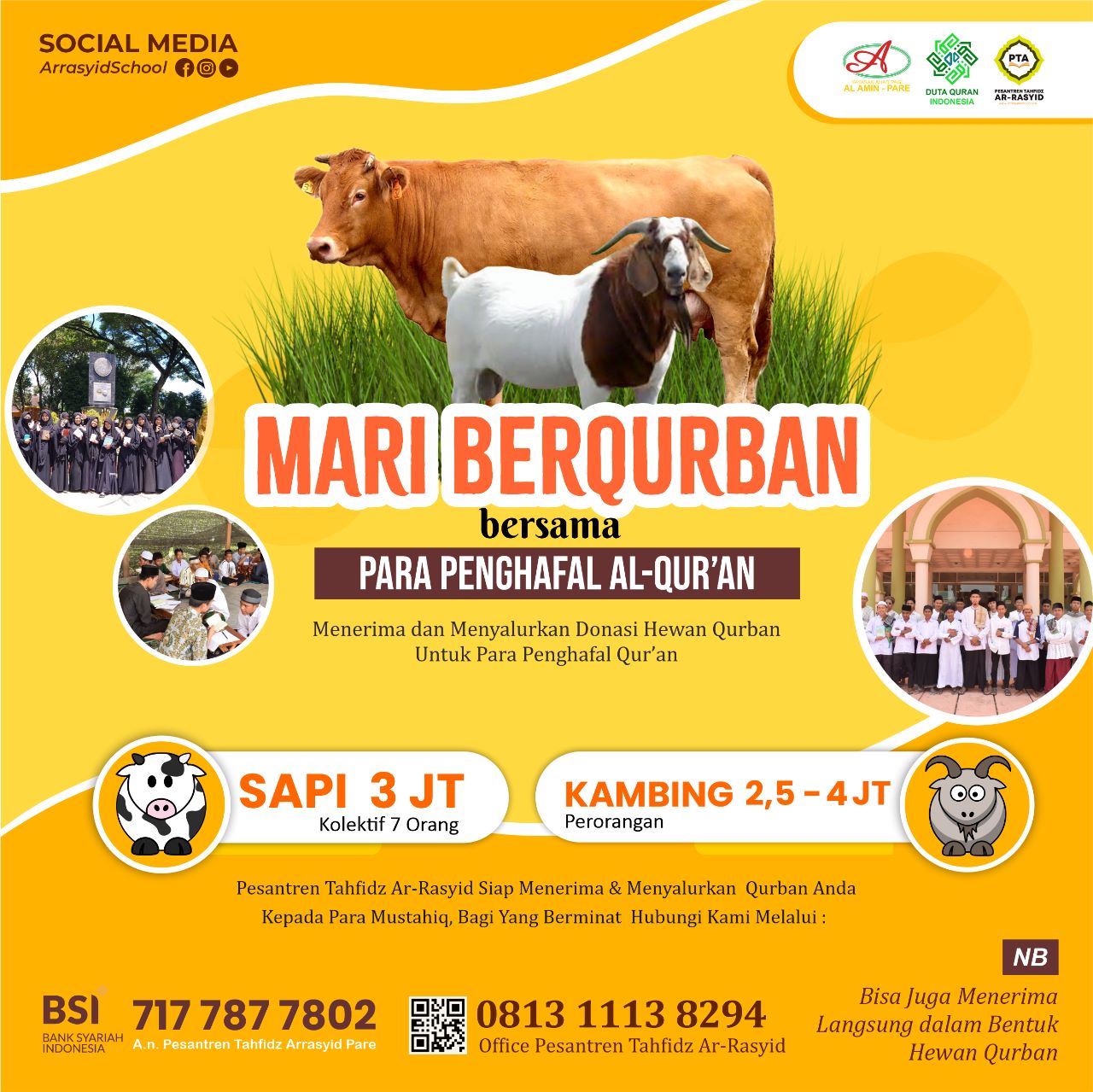 Mulai dari Rp.2.500.000-Rp.4.000.000 ayah/bunda sudah dapat mengikuti program qurban bersama penghafal Al-qur’an,setiap satu orang.