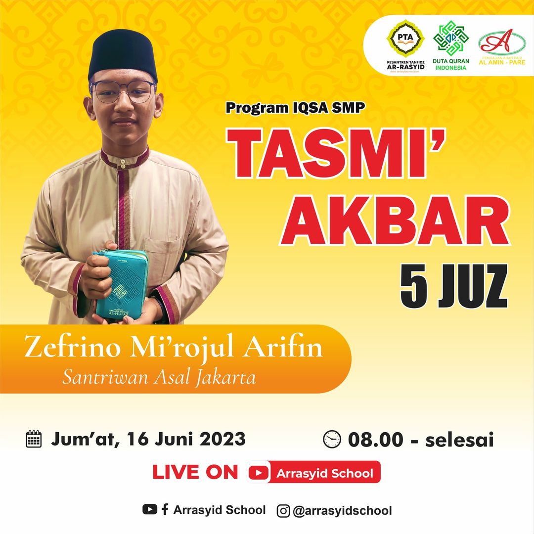 Live Tasmi’ 5 Juz sekali duduk oleh ananda Zefrino Mi’rojul Arifin , santriwati IQSA SMP asal Jakarta